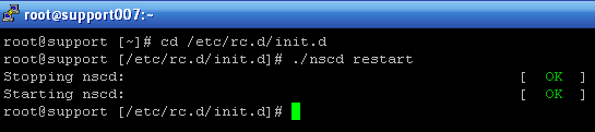root@support [~]# cd /etc/rc.d/init.d root@support [/etc/rc.d/init.d]# ./nscd restart