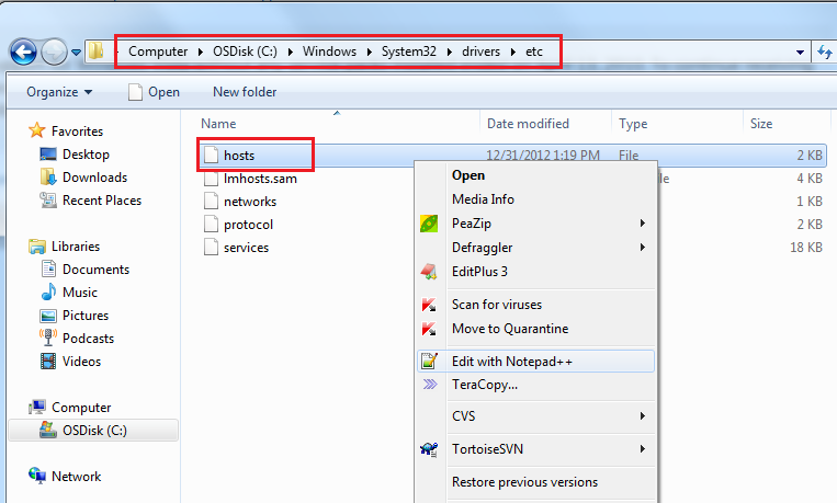 1. Go to C:\Windows\System32\drivers\etc and locate the hosts file.