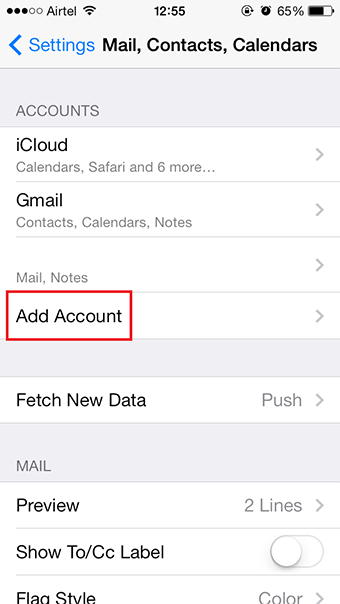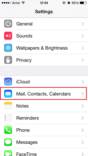 2. Tap on the Mail, Contacts, Calendars option.