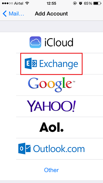 4. From the list of mail platforms shown, select Exchange.