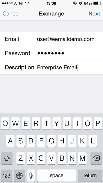 Your Enterprise Email Account can be set up on iPhone's or iPad's iOS7 by referring to the below mentioned process: