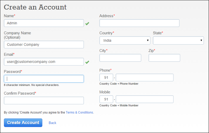 An improved Customer Sign-Up process with fewer fields and instant validation