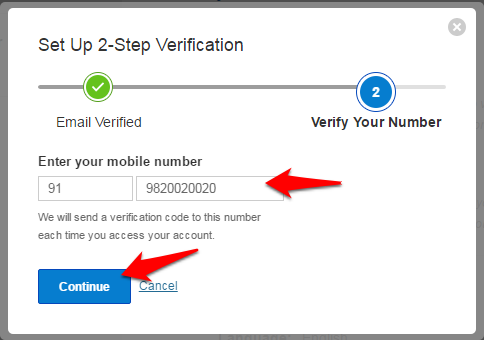 Enter your phone number and click on Continue to receive a code on your phone number for verification.