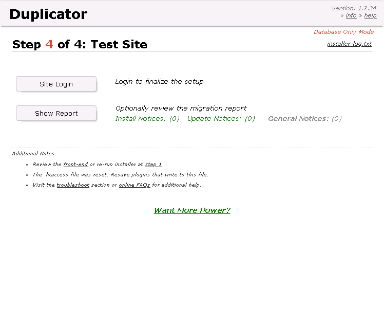 Download both Installer and Archive files. These are the only files you need to move to the new WordPress Hosting package.