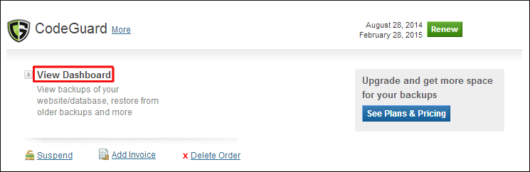 Click the View Dashboard link to visit the CodeGuard dashboard.